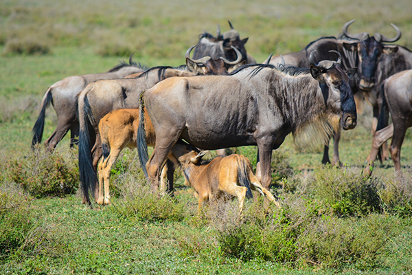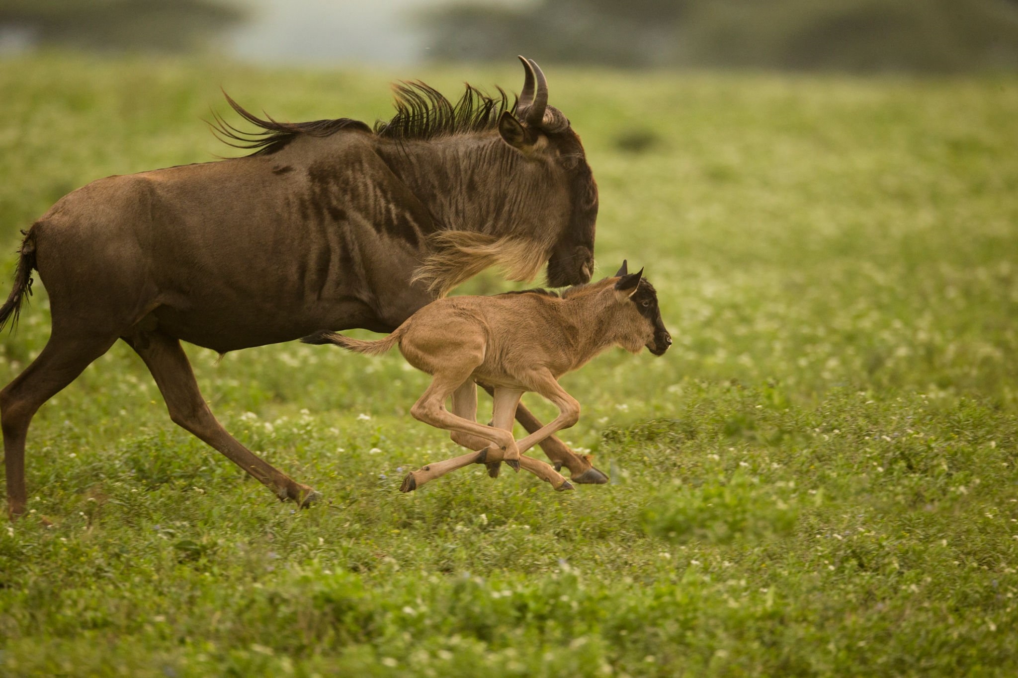 In the southern Serengeti and Ndutu plains, thousands of wildebeest calves are born every day. This period is marked by incredible predator-prey interactions, as lions, cheetahs, and hyenas take advantage of the abundance of vulnerable young. - The Journey North (April to June):